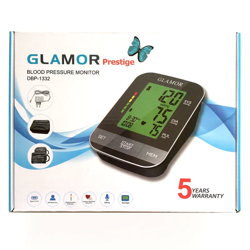 فشارسنج دیجیتال بازویی گلامور مدل DBP-1332 یکی از پیشرفتهترین ابزارهای اندازهگیری فشار خون خانگی است که با طراحی زیبا، عملکرد دقیق و امکانات هوشمند، تجربهای آسان و مطمئن برای کنترل سلامت قلب شما فراهم میکند. این فشارسنج بازویی دیجیتال با قابلیت سخنگوی فارسی، اندازهگیری را برای همه اعضای خانواده ساده کرده و نتایج را بهصورت صوتی اعلام میکند.